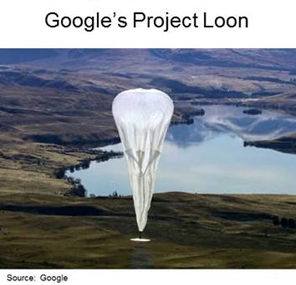 Project Loon is a global network of super-pressured, solar powered high-altitude balloons that act as floating cell towers, allowing local telecommunications companies to extend their coverage into areas that are currently unserved.